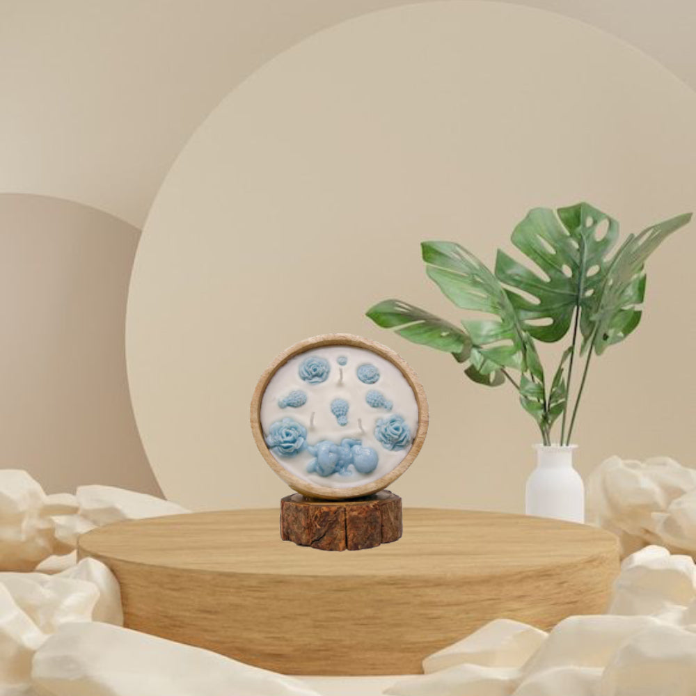 Enhance your home ambience or celebrate precious moments with the Sage & Herbs Beautiful Wax Baby Aroma Candle in Mango Wood Bowl. This handcrafted aroma candle is made with 100% natural soy wax and poured into an elegant mango wood bowl, making it both a beautiful décor piece and a functional fragrance candle.