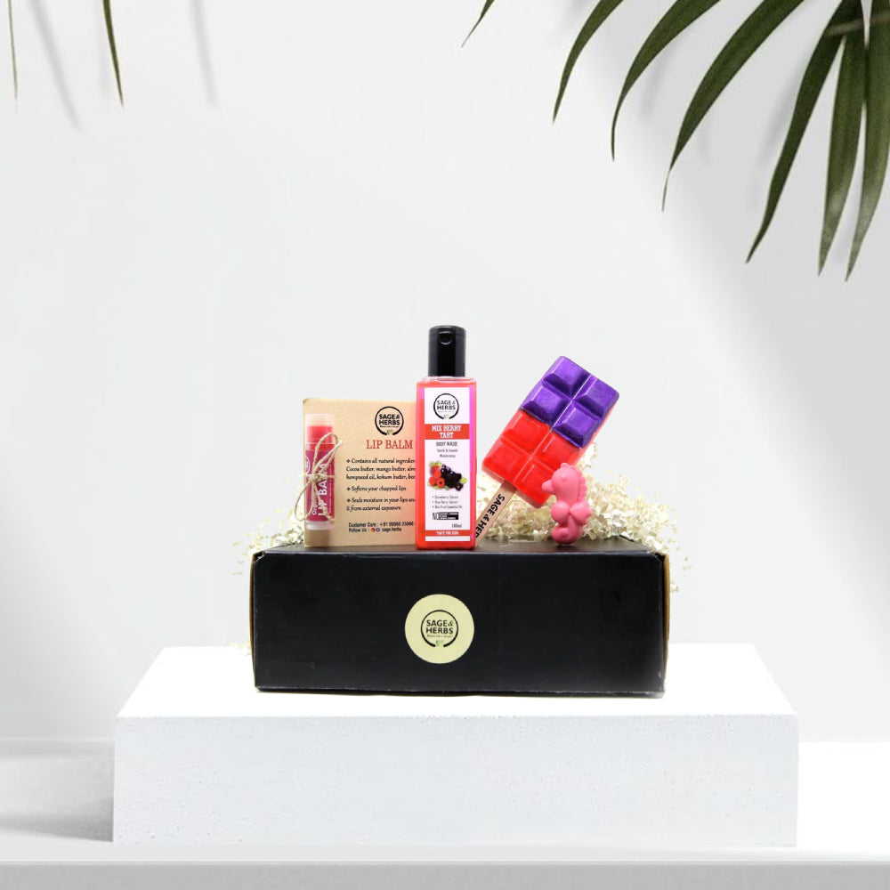 Make bath time exciting with the Berry Bright Bliss Box — a cheerful, all-in-one kids’ bath and body gift set from Sage & Herbs curated to bring fruity freshness and joy to their self-care routine. Packed with playful, skin-friendly products and vibrant scents, this set makes cleaning up fun while nourishing delicate young skin.