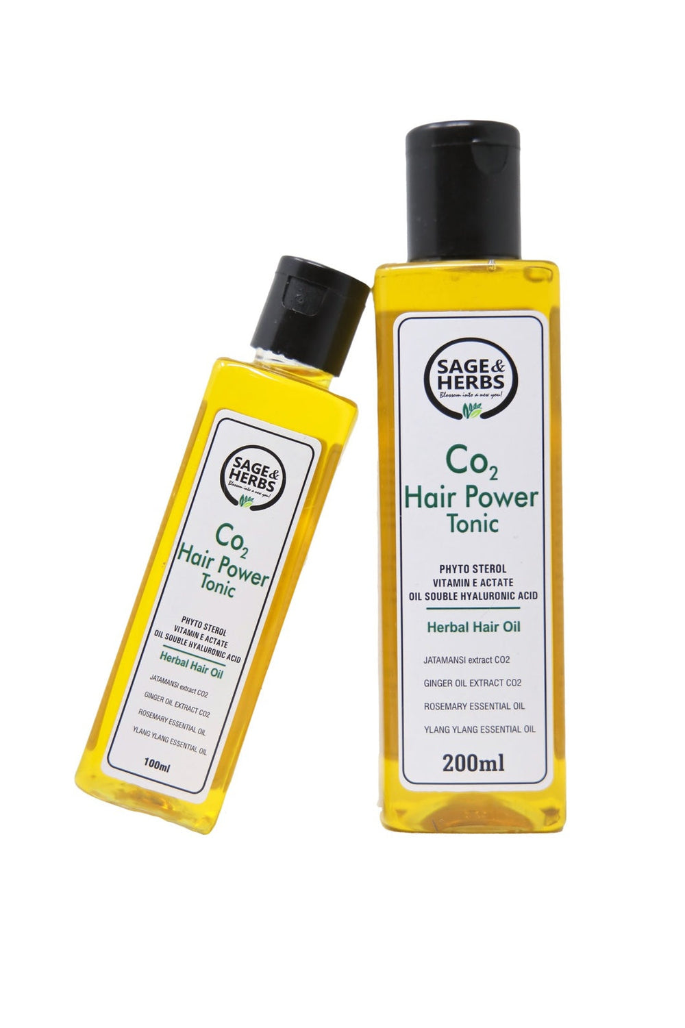 The CO₂ Hair Power Tonic is a herbal scalp and hair tonic from Sage & Herbs infused with CO₂-extracted herbal oils for maximum botanical potency. This lightweight formula stimulates blood circulation at the scalp, nourishes hair roots, and helps reinvigorate dormant follicles to support healthy hair growth. Enriched with rosemary essential oil and vitamin E acetate, it also helps fortify weak strands and improve overall scalp vitality — all without sticky residue or heavy oiliness. Ideal as a daily leave-in treatment for improved hair texture, volume and follicle nourishment.