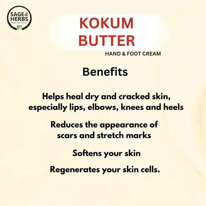 Powered by kokum butter — a powerful emollient with essential fatty acids and antioxidant vitamin E — this cream delivers rich moisture that penetrates deep into dry, rough skin without feeling greasy. Kokum butter absorbs easily and helps prevent moisture loss, making hands and feet softer and more supple.