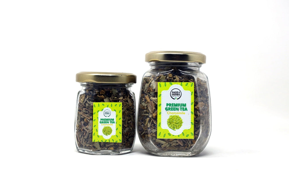 Premium Green Tea (Chamomile) from Sage & Herbs is a soothing and aromatic tea blend that combines high-quality premium green tea leaves with dried chamomile flowers to create a calming infusion perfect for relaxation and unwinding after a busy day.